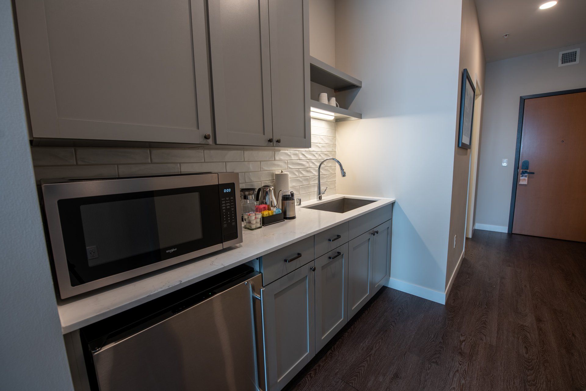 Just like home! This luxurious three-bedroom suite with offers a kitchen and all the amenities of home including state-of-the-art technology and TVs in each bedroom and living room. The Master Suite has a plush king bed and a private bath; the two other bedrooms contain queen size beds. There is ample closet space throughout. Sleep in or rise early to enjoy a freshly brewed pot of coffee with your in room or enjoy it on your private balcony before setting out for the morning. After working up an appetite, return to your peaceful haven and enjoy the convenience of a full kitchen with quartz countertops complete with a refrigerator, microwave and dishwasher. Wrap up another beautiful day by gathering together in the comfort of your living room to enjoy your favorite movie.